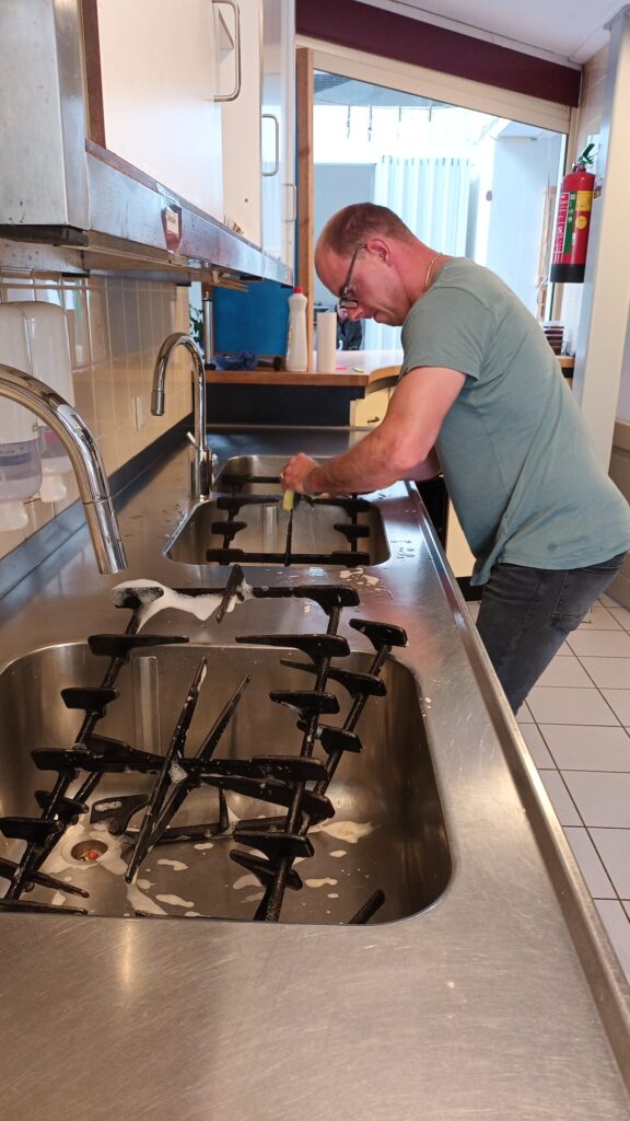 In de middag stofzuigen en dweilen we de kantine nog mooi schoon, drinken we nog een kopje koffie/thee en is de dag in het serviceteam weer voorbij!